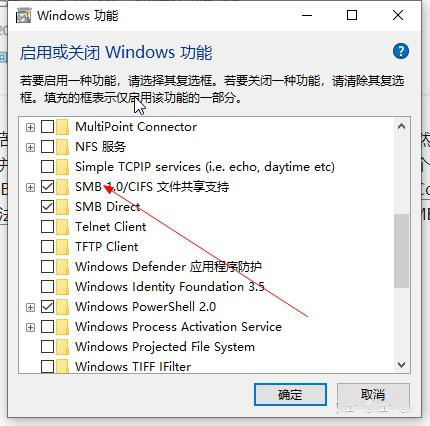 然后我辛辛苦苦对比了每一个服务,发现都是开着的,我就更加疑惑了,突然意识到,我在pc的服务列表中,并没有这个服务“Computer Browser”,于是尝试解决这个问题,百度了“没有Computer Browser服务”这个问题,于是得到答案 Win10没有Computer Browser服务的解决方法,需要在“启用关闭windows功能”那个选项里打开“SMB1.0/CIFS文件共享支持”。