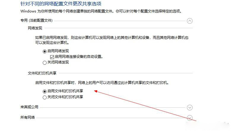 在选择“启用文件和打印机共享“之后,发现点右下角保存设置之后,在打开此项设置,仍然是“关闭文件和打印机共享”,不能保存设置,百思不得其解。